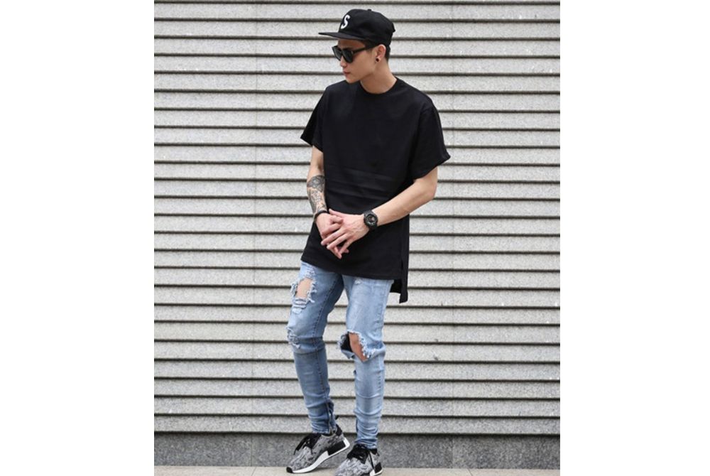 • Một chiếc áo nam suông cùng với độ rộng vừa phải sẽ giúp cho bạn có thể khắc phục được những khuyết điểm trên cơ thể. Nếu bạn đam mê phong cách Street Style thì hãy tạo điểm nhấn bằng quần jeans rách, theo đó là một đôi sneaker. Kiểu phối đồ này sẽ giúp bạn tự tin dạo phố, hội họp cùng bạn bè.