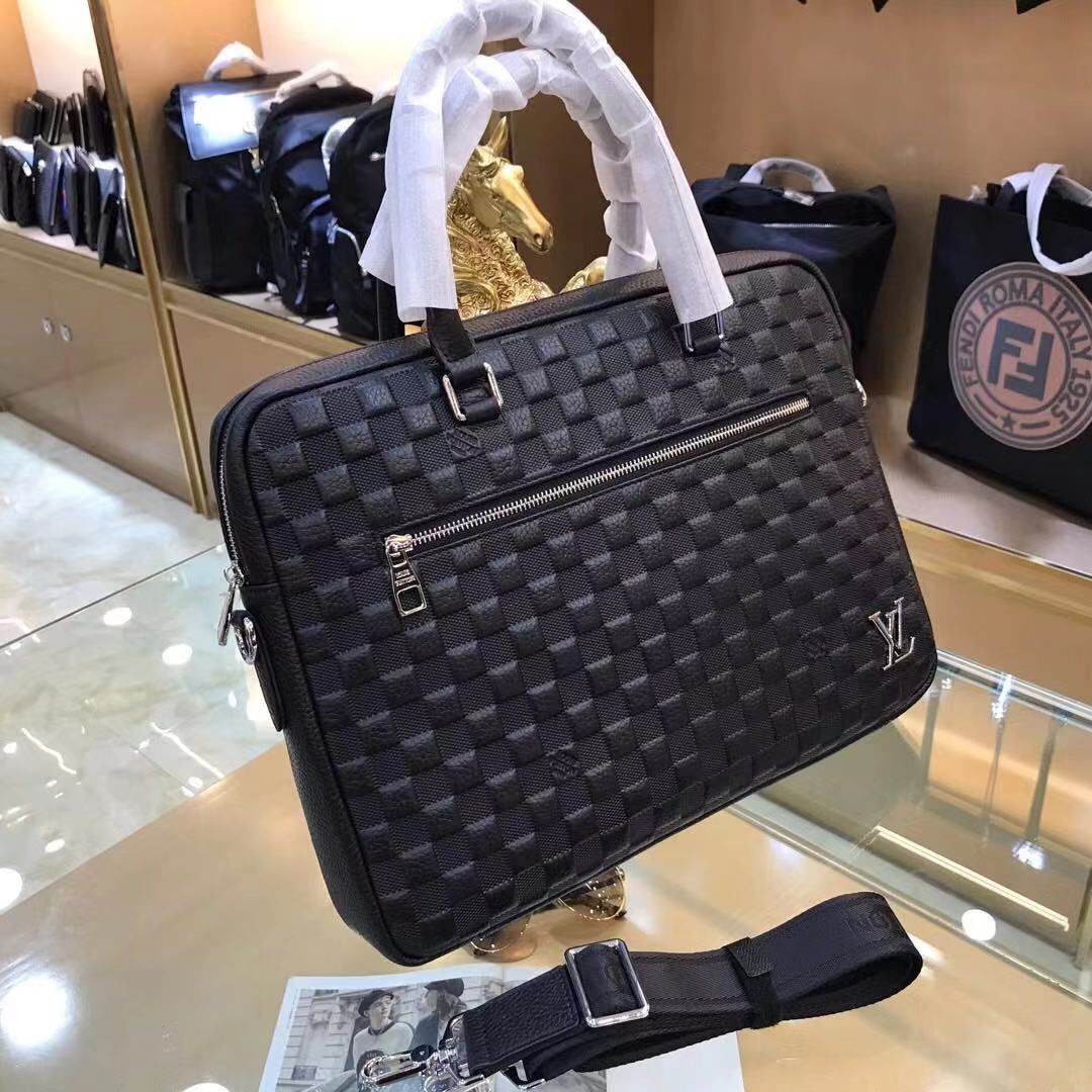 Mẫu cặp vân nổi caro có thiết kế truyền thống với họa tiết vân da nổi caro, bề mặt cứng cáp, kích thước lớn đựng được laptop và hồ sơ giấy tờ quan trọng.