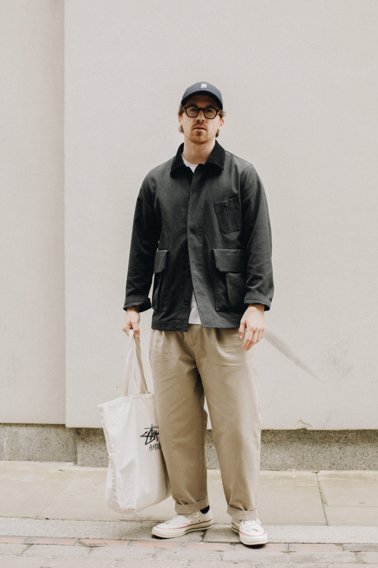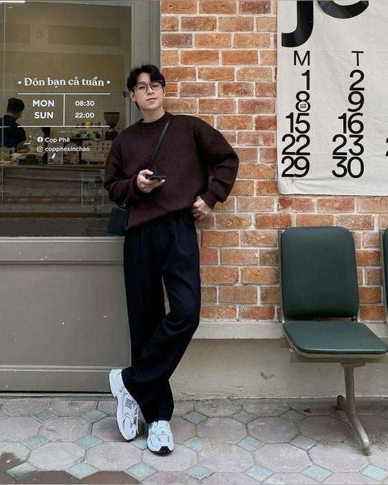 Các chàng trai có thể kết hợp quần tây dáng basic tone màu trung tính với áo sơ mi trẻ trung cùng túi bao tử.
