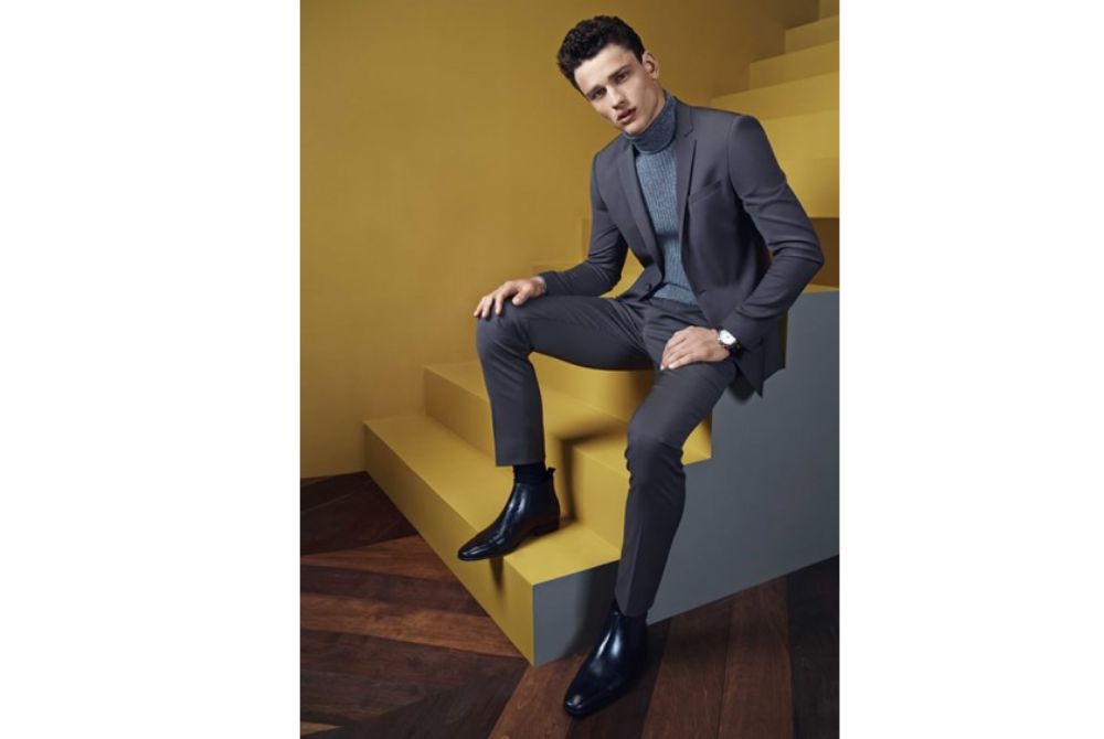 Để có tông màu thời trang và quốc tế, hãy chọn kiểu bốt đen với áo sơ mi cổ rùa vừa vặn, nhét trong quần dài màu than cắt kiểu Châu Âu. Dù là da hay da lộn, những đôi giày Chelsea boots đen cũng tạo thêm nét hiện đại cho bất kỳ bộ đồ ba mảnh nào được thiết kế riêng. Tạo kiểu với Chelsea boots, miễn là bạn tạo được sự cân bằng chuyên nghiệp. Nếu bạn đang đeo cà vạt, bạn có thể đi một đôi bốt da lộn bình thường hơn. Nhưng diện mạo của bạn phải phù hợp với giày da nếu bạn muốn bỏ mặc áo khoác.