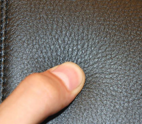 Bằng việc quan sát kỹ bề mặt sản phẩm da bò thật. Nếu bề mặt có những vết lõm hoặc vân da không đồng đều. Đấy chính là da bò thật. Còn bề mặt bóng loáng, bằng phẳng hoàn hảo, thậm chí không có lỗ chân lông. Thì đấy chính là simili giả da hoặc da PU.