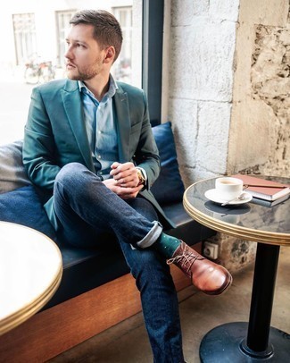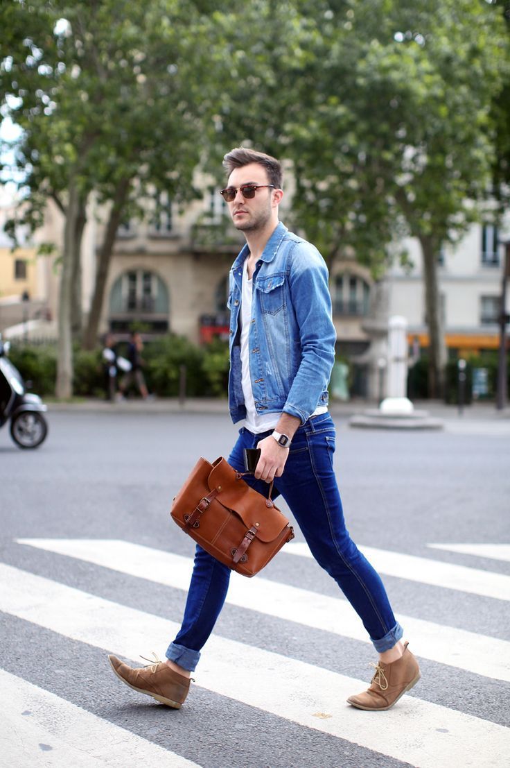 Bạn có thể ghi dấu ấn bằng tổng thể demin on demin. Nó bao gồm các phụ kiện như quần jeans, áo thun và áo khoác demin. Sự kết hợp này thể hiện sự nam tính và năng động khi kết hợp với chukka cổ điển.