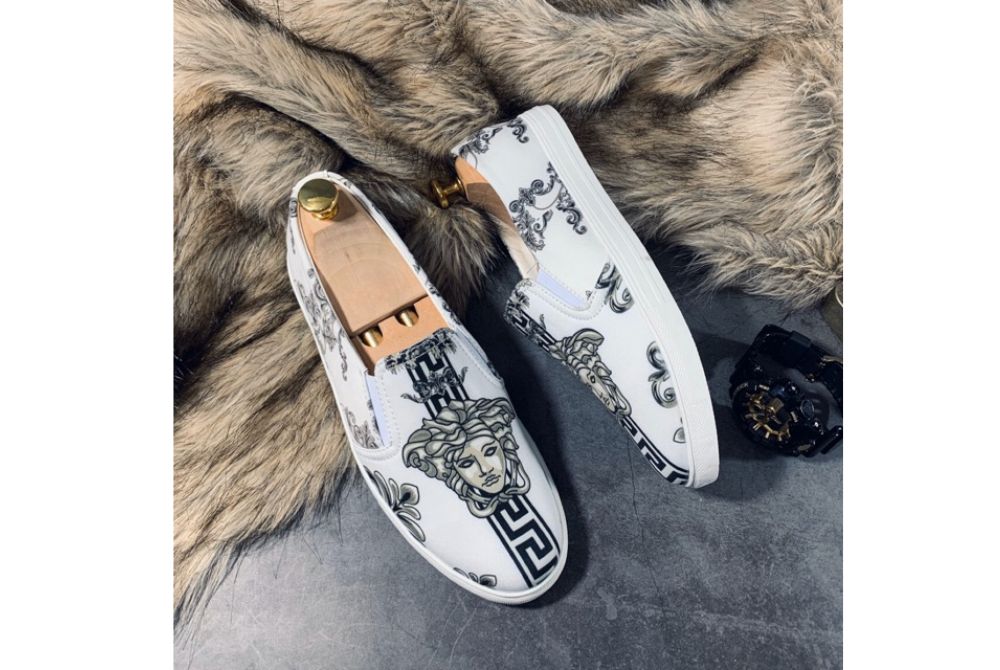 Versace nổi bật với kiểu dáng và họa tiết độc đáo, giúp người mang sáng tạo outfit cá tính. Giày có tính thẩm mỹ cao với form dáng sang chảnh và màu sắc theo tiêu chí của hãng.