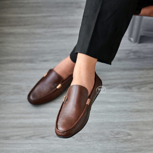 Thiết kế: Nhìn kỹ phần thiết kế đế giày của giày mọi sẽ khác với giày lười Loafer. Giày mọi có đế giày cực kỳ mềm, đi nhẹ êm, không phát ra tiếng như Loafer. Đế giày mọi nam da bò có 2 loại chính. Đó là đế mềm được làm từ một lớp da mềm, loại đế cứng được chồng nhiều lớp da. Giày mọi có thể sử dụng các loại da cứng hơn như da bò núi. Một biến thể khác cho giày mọi về phần đế cao su. Phần đế có thêm hạt u chống trơn khá giống với Driving. Phần thân giày cơ bản là dáng trơn basic. Giày mọi có thể có đai giống penny hoặc cũng có thể thêm tua rua như tassel loafer. [caption id="attachment_4731" align="aligncenter" width="600"]