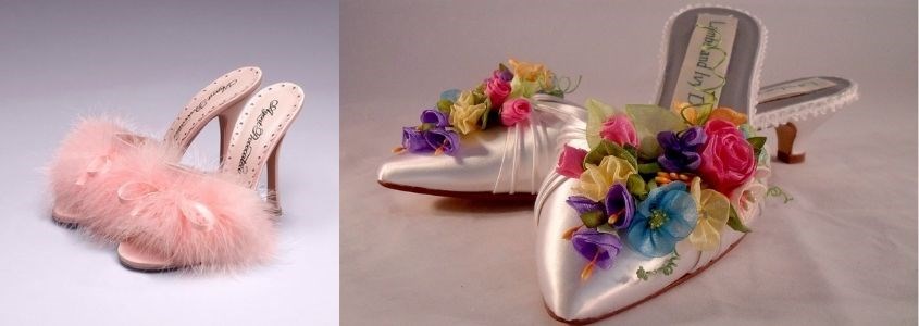 - Năm 1950: Giày sục làm bằng nhựa và trang trí bằng lông vũ ở mũi.