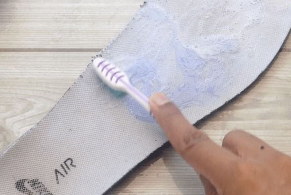 - Nếu giày không có đế tháo rời, bạn sẽ phải làm sạch bên trong giày bằng tay. Bàn chải đánh răng không sử dụng có thể hữu ích trong những trường hợp này.