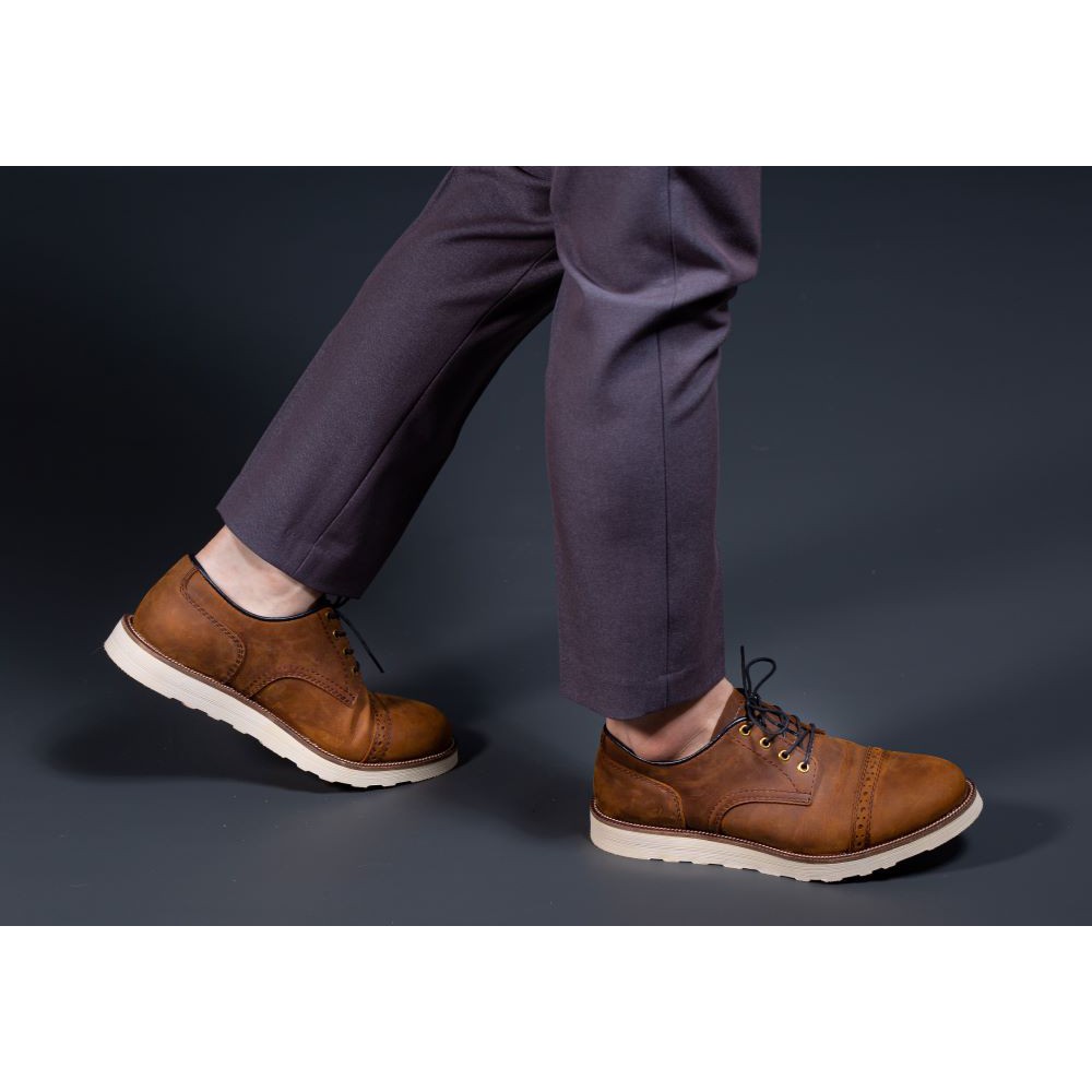 - Boot Wingtip là lựa chọn tốt với họa tiết lỗ tinh tế, dây buộc nhỏ và đế giày có gót dày.