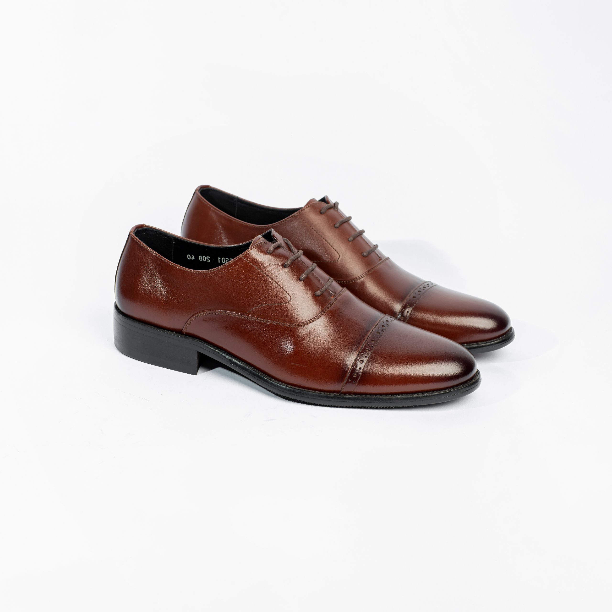 Oxford cap-toe có sự biến tấu, khác biệt ở mũi giày so với giày Oxford truyền thống. Cụ thể đó là đóng thêm một lớp da, hoặc những đường viền phân chia thân và mũi giày. Mẫu giày có thêm phần đục lỗ ở mũi chân tạo nên nét cá tính mạnh không kém phần sang trọng. Nhìn tổng thể, màu nâu làm tăng thêm phần trẻ trung cho đôi giày. Đôi giày này được xem giày Oxford nam trẻ trung năng động.